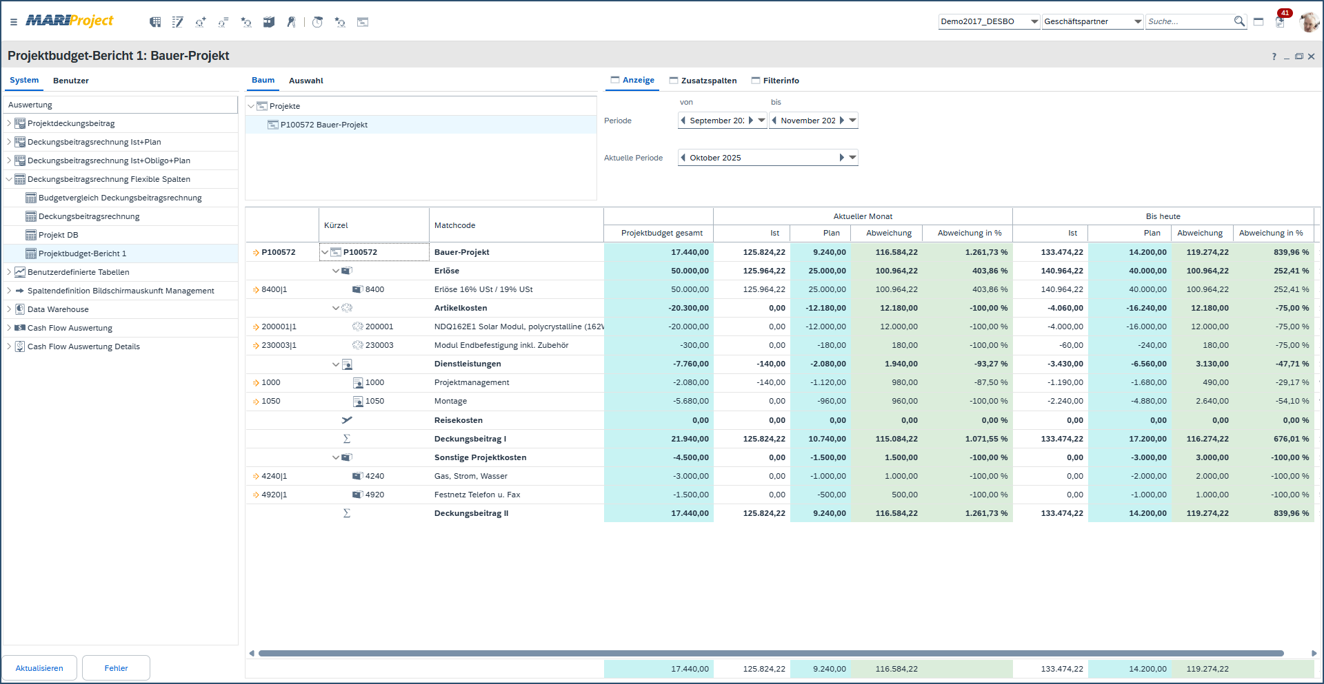 MARIProject bietet zahlreiche Auswertungen für das Projektcontrolling